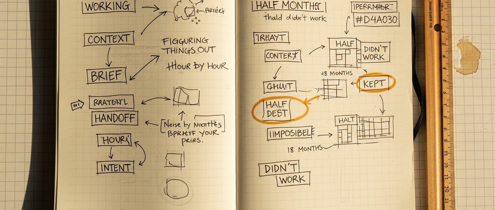 For a few months now I've been learning to manage Ai as a day job. Not as a side tool — as the actual collaborator I work with, hour by hour. I'm doing it as a solo, which makes the seams visible: what I hand over well, what collapses into noise when I hand the wrong piece, what I have to keep framing myself because the thing I'm asking for doesn't exist in language yet. That's the practice I'm reporting from inside.
